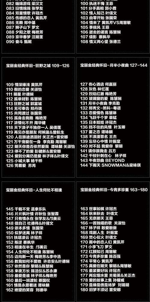 陈慧娴的《千千阙歌》以其深情的演绎和优美的旋律,成为了无数人心中的经典。歌曲中“千千阙歌,唱不尽的离愁别绪”等句,让人感受到了岁月的沧桑和人生的无常。